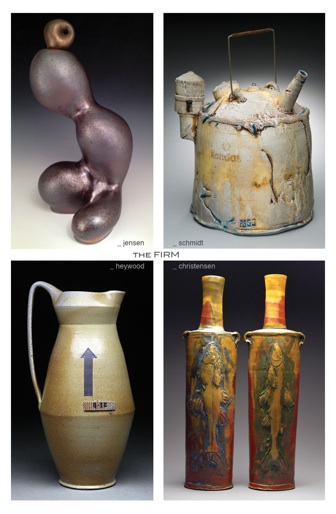 Exhibition featuring Shane Christensen, Stephen Heywood, Brian Jensen and Michael T Schmidt. The FIRM “Collaborative Energy” 2013 exhibition at NCECA in Houston, TX.